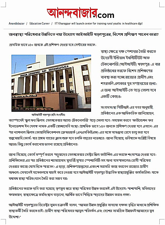 “SFS Academies” (School for Skills) is now at IIT Kharagpur, the oldest and largest IIT in India. An MoU was signed with Prof. Suman Chakraborty, Director IIT Kgp today. This capstone event builds on our continuing presence in IIT Guwahati, IIT Indore and NIT Meghalaya. SFS (spread in 6 states in India) will offer multiple allied health courses to the local youths in the IIT environment and develop them as digitally-literate, technology-savvy next-gen health workers, thus paving the way for stable and formal employment in the health sector.
